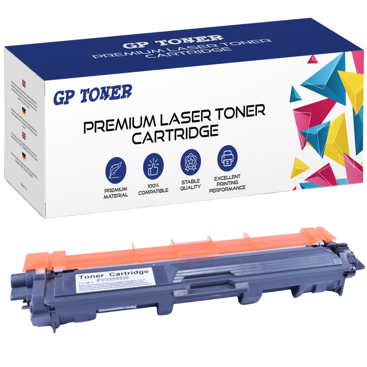 Velkokapacitní tonerová kazeta TN-245BK vydrží až 2 500 stran. Kompatibilní tonerové kazety TN-245BK lze použít v několika typech tiskáren Brother -9130CW, MFC-9330CDW. Kompatibilní tonerové kazety TN-245BK jsou kazety prémiové značky, které jsou vyrobeny z nových komponent. Díky tomu je tento toner kompatibilní s TN-245BK. Díky vysoké kvalitě a atraktivní ceně stojí tento produkt za pozornost.